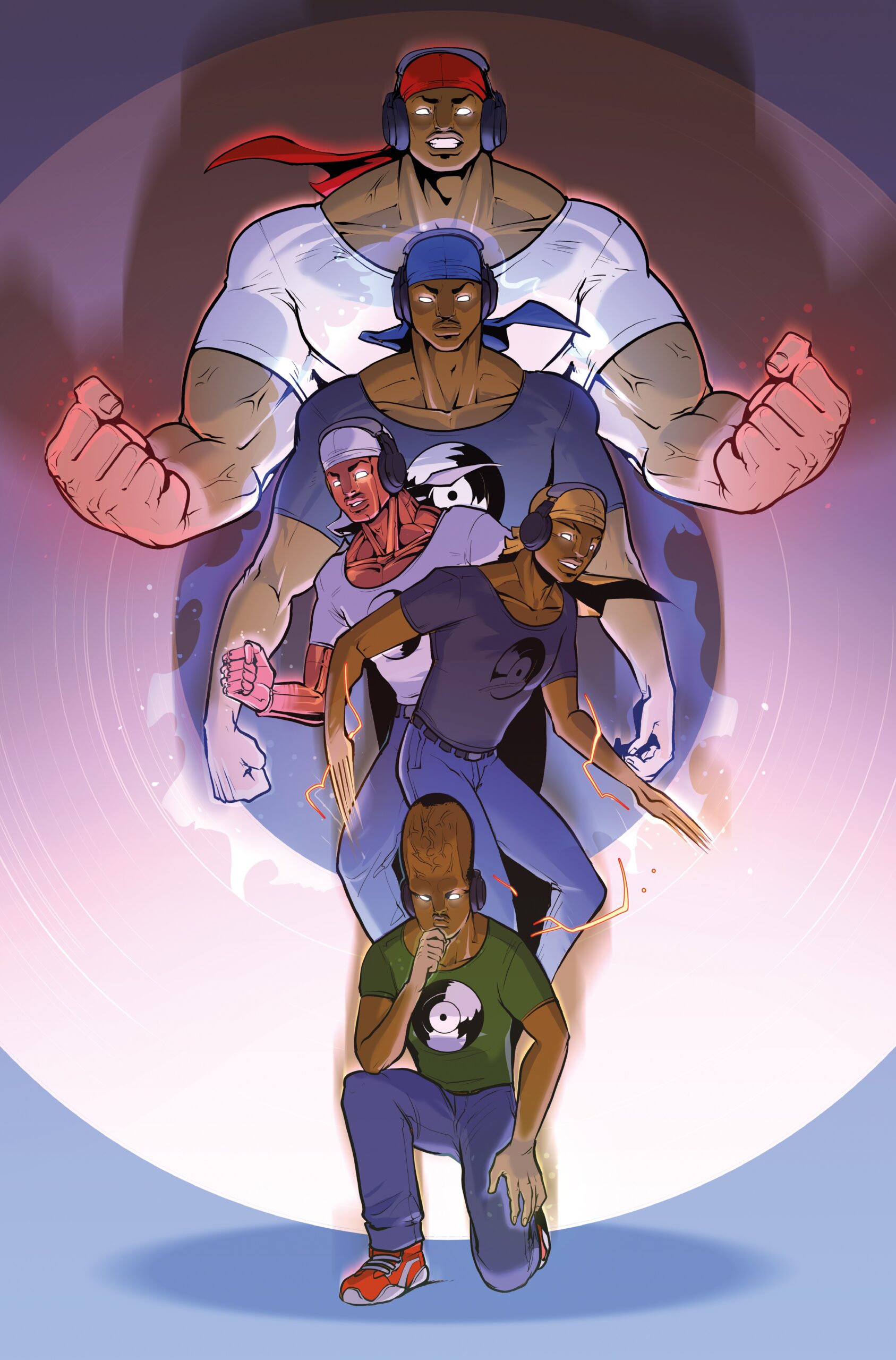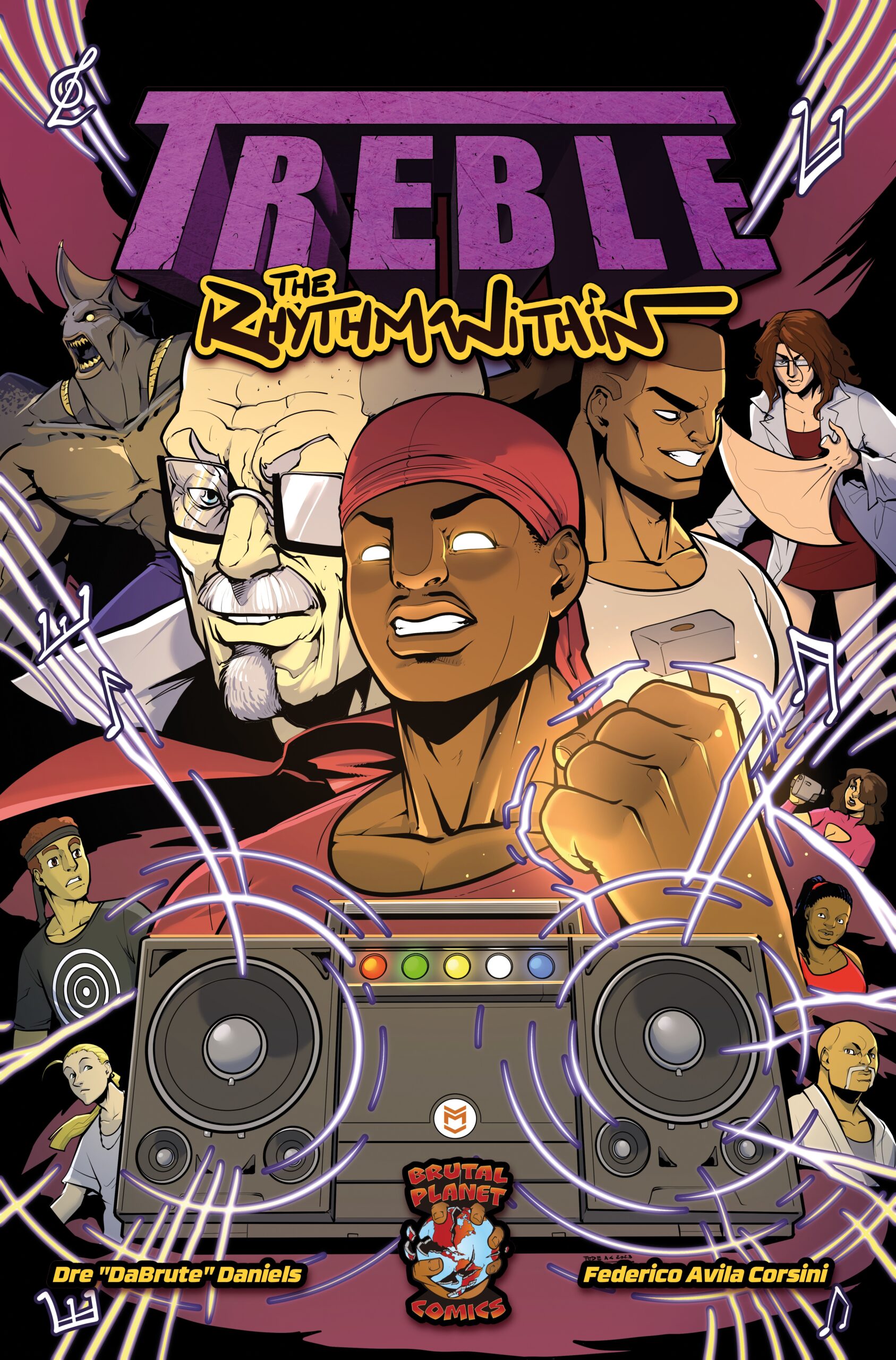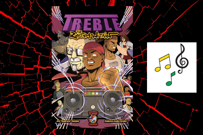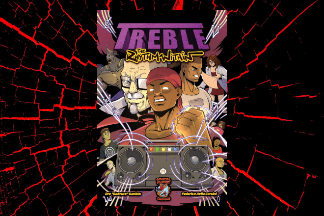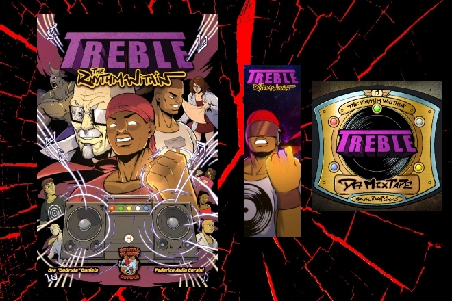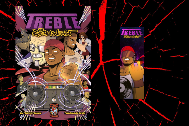 Original comic book stories with unique characters and compelling narratives that blend action, drama, and music.